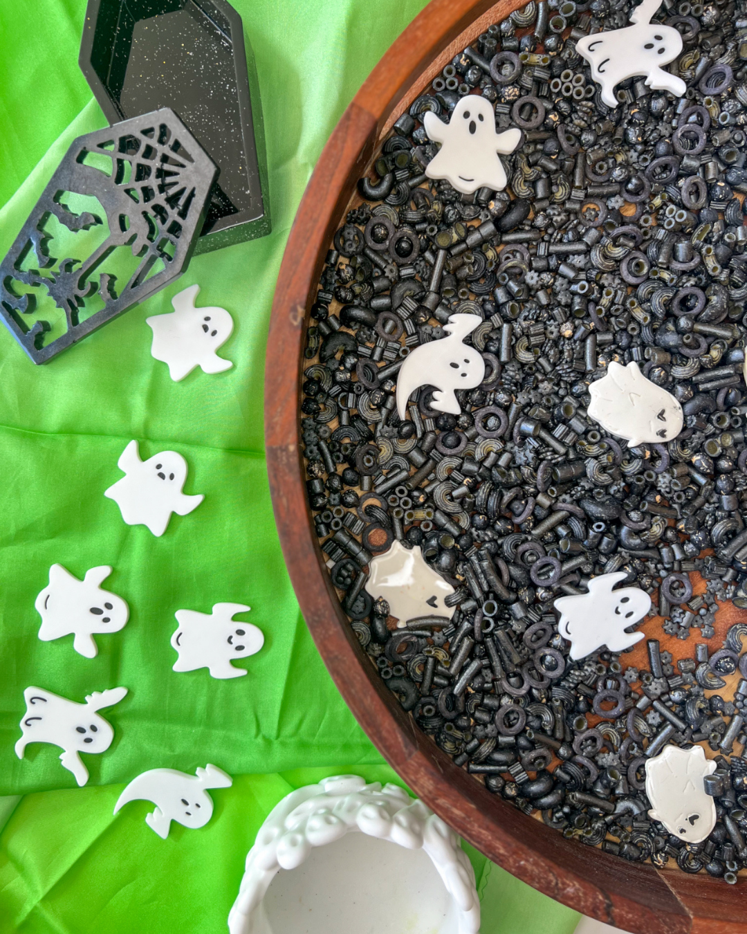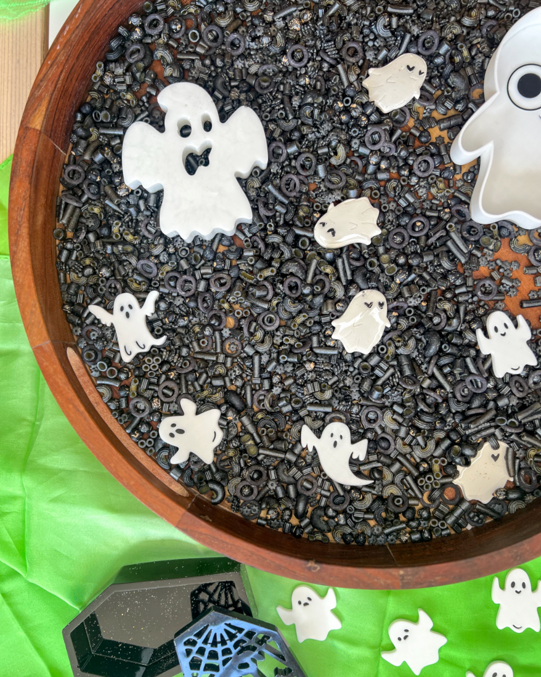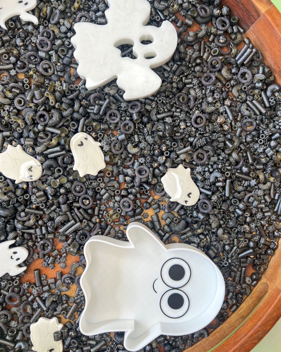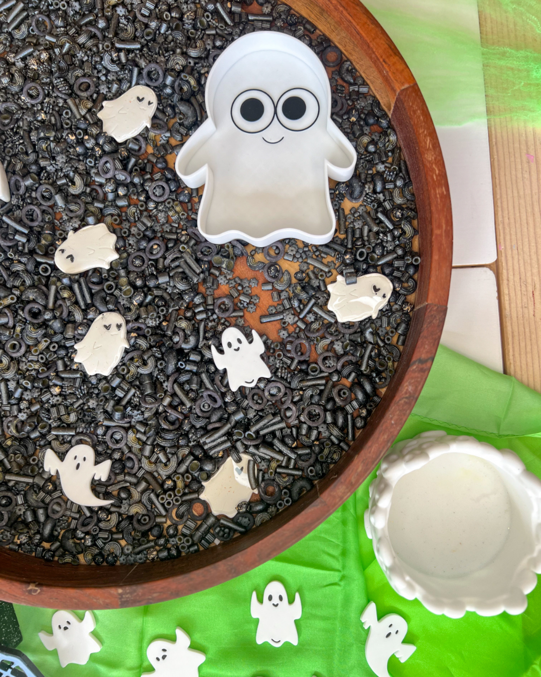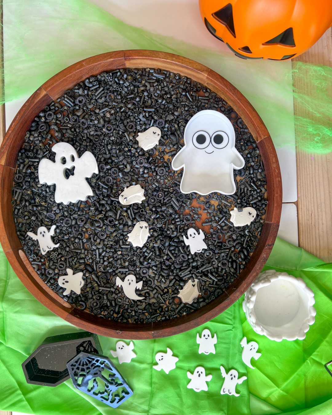 Then look no further than our incredible sensory bases. Bright, sparkly, colourful and a whole lot of fun. Whether it be scooping, pouring, sifting or shaking these are a sensory delight for our little loves. This base comes with Resin and Polymer Clay Ghosts.