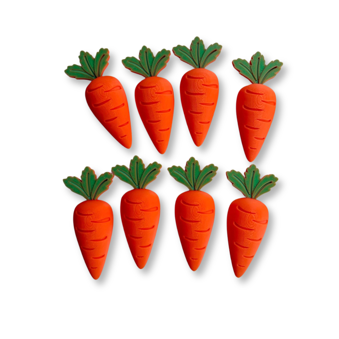 This set contains 8 different carrot coins ranging in size from 6-8 cm in size