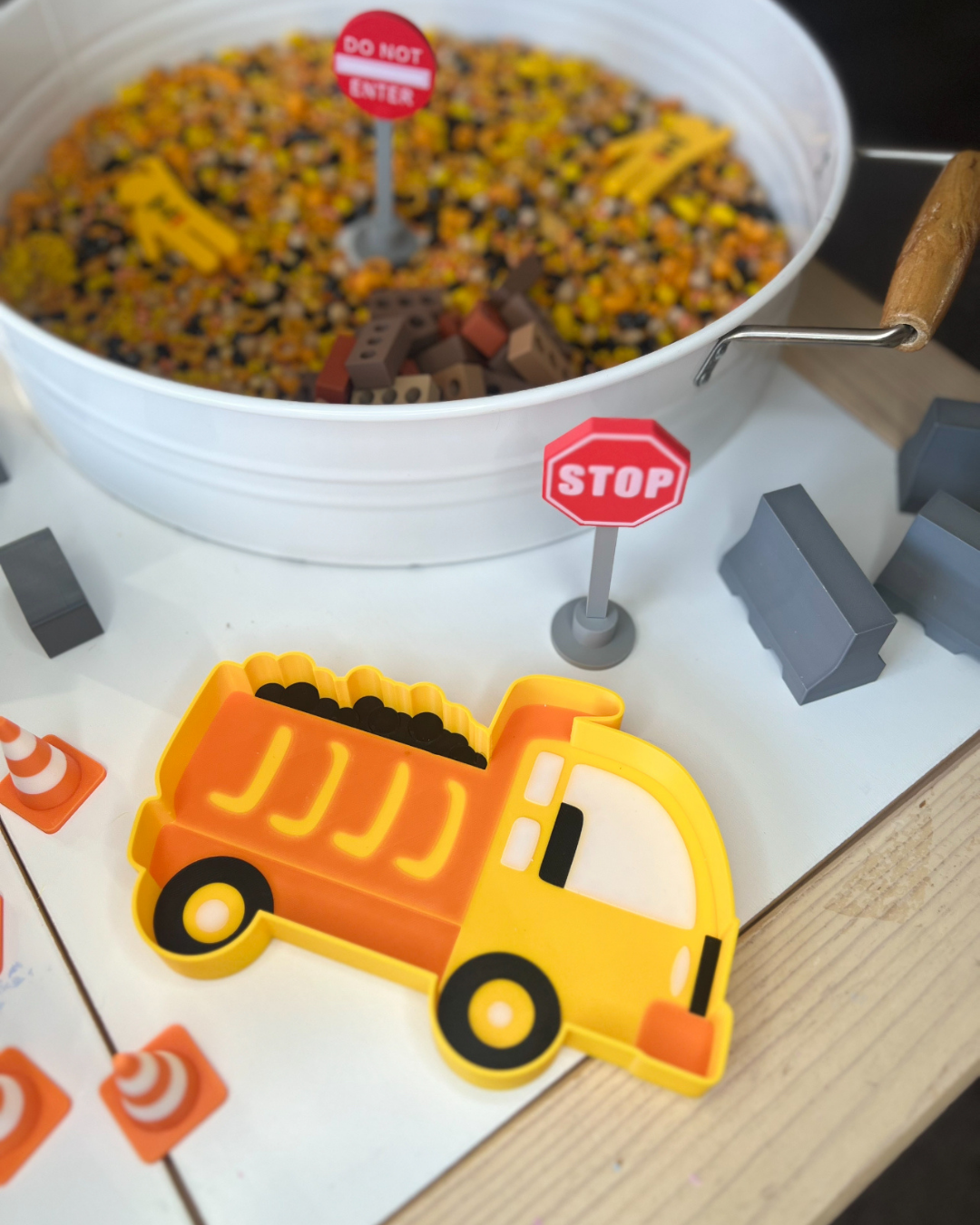 Bring magic to your sensory play this gorgeous Dump Truck sensory tray, the perfect addition to any Sensory play tray.
