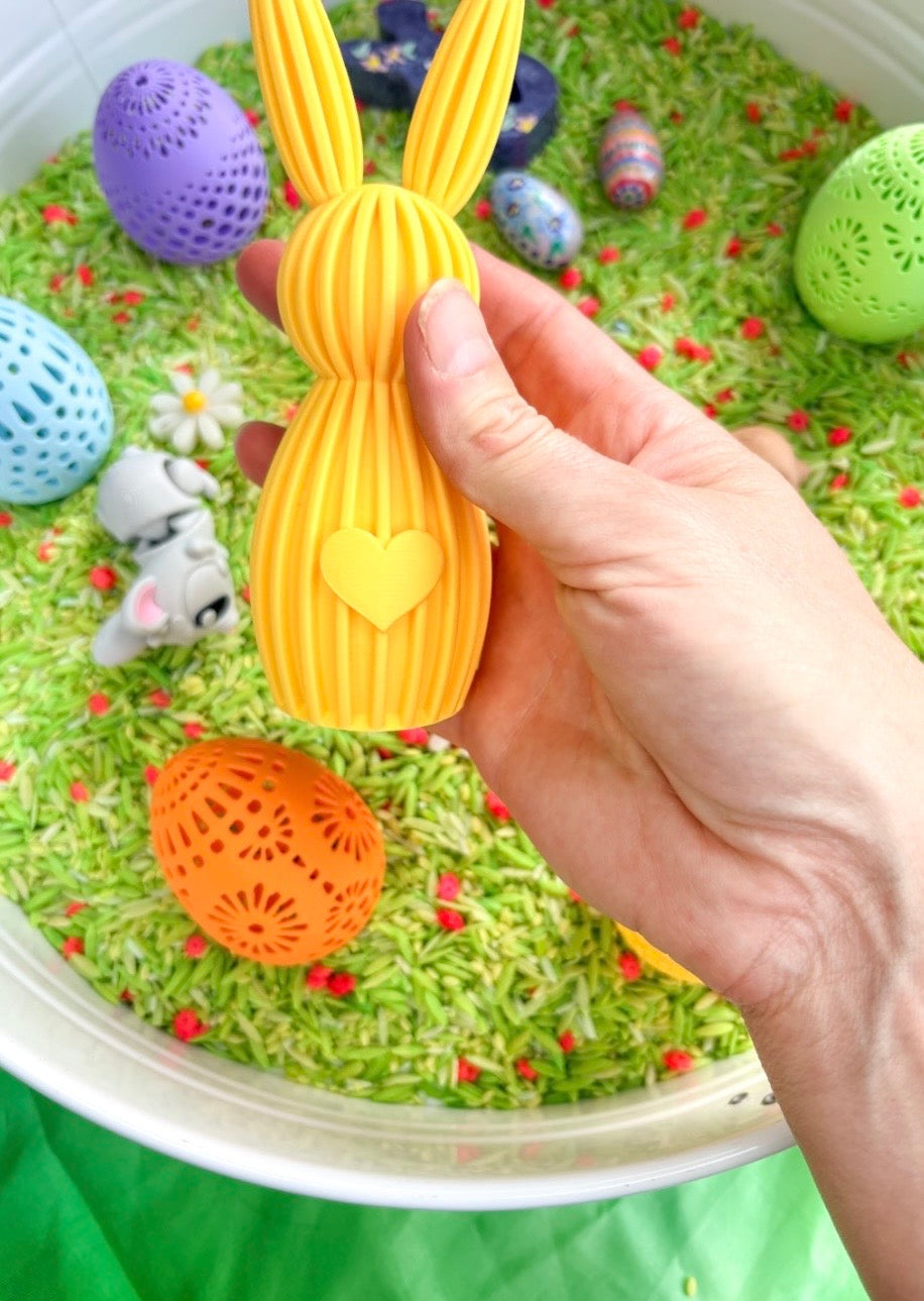 Each Bunny is lovingly printed by me using eco-friendly PLA filament — a plant-based, biodegradable material that's safer for little ones and kinder to the planet. These coins are lightweight yet durable, offering the perfect space for sensory bases, small world adventures, sorting activities, and creative exploration. Crafted with care and a deep love for sensory play, they help make setups more inviting, and inspiring for young imaginations.