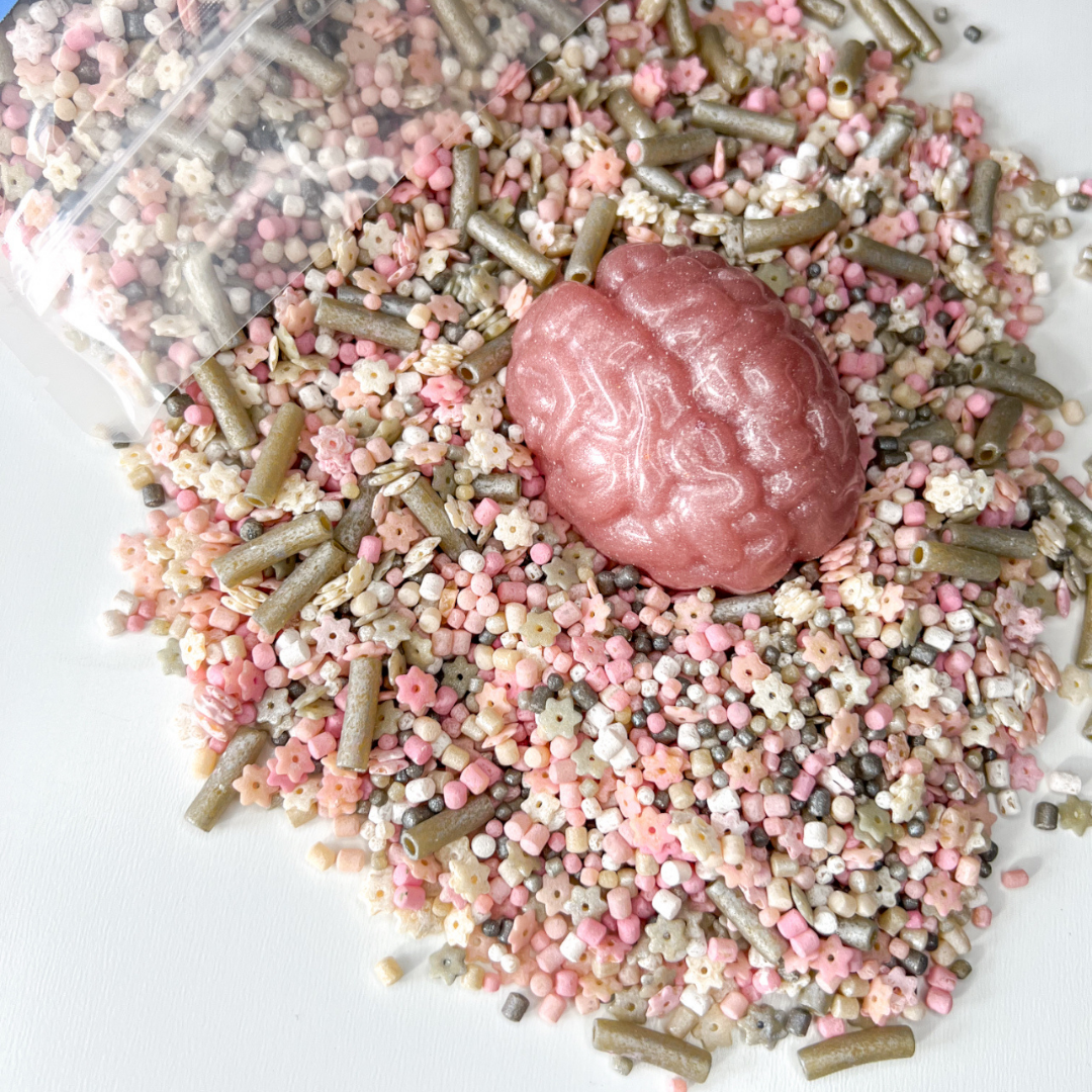 All our bases are handmade and coloured using non toxic paints and dyes. This base comes with a resin brain.